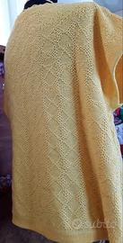 maxi blusa comoda in maglia di puro cotone giallo, tessuto della maglia con disegno a rilievo, manica scivolata ad aletta, scollatura quadrata rifinita uncinetto, corredata da orecchini e girocollo uncinetto, tg 50/52