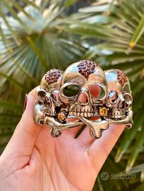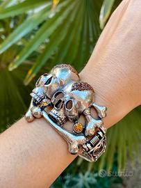 Maxi bracciale con teschi e strass di alta bigiotteria (da paura! e %), diametro bracciale 6,5 x 5,5 cm, facilmente indossabile grazie all'apertura e chiusura con molla facilitata, peso