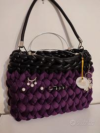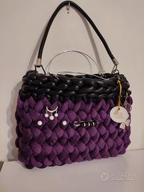 viola velluto con contrasto nero tracolla manici argento maxy per chi ama le borse grandi 40x30