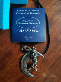 Vendo maxi ciondolo originale di Raspini con mezza luna e due angioletti, più cordone nero anch'esso originale.