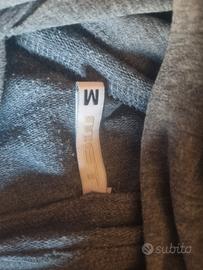 Vendo bellissima maxi felpa del brand MET, utilizzabile anche come abito corto/mini-dress, in color grigio melange. Il capo è originale e si presenta in condizioni eccellenti, essendo stato indossato in pochissime occasioni. Il design è moderno e ricercato, caratterizzato da un ampio cappuccio con chiusura frontale asimmetrica a bottoni metallici logati, che permette di regolare l'apertura a piacimento. La vestibilità è confortevole grazie alla qualità del tessuto elasticizzato. Dettagli tecnici e materiali: Marca: MET (Made in Italy style) Taglia: M Composizione: 70% Cotone, 22% Poliestere, 8% Elastane (tessuto morbido, traspirante e stretch). Dettagli estetici: Tasca a marsupio frontale rifinita con borchiette metalliche ai lati, polsini e bordo inferiore a costine elasticizzate. Perché sceglierlo: È un capo versatile, perfetto da abbinare a leggings o collant coprenti per un look urban-chic, oppure con un paio di sneakers per un outfit casual. Grazie all'alta percentuale di cotone è piacevole sulla pelle, mentre l'elastane assicura che il capo non perda la forma anche dopo il lavaggio. Condizioni: Indossato pochissime volte. Non presenta macchie, buchi o segni di usura. Disponibile per spedizione immediata o ritiro a mano.