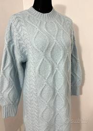 Maxi pull clockhouse Taglia M Color Celeste Misure Da ascella ad ascella 53cm Spalle 53cm Lunghezza dalla spalla in giù 86cm Lunghezza manica 46cm