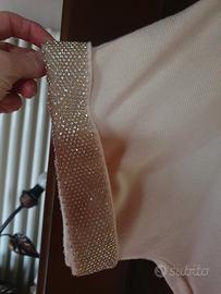 Bellissimo maxy maglione in lana maniche a tre quarti con strass nuovo color crema larghezza al seno cm 76 lungo 97 cm spalle 53 taglia unica