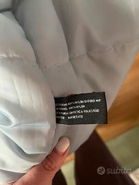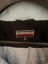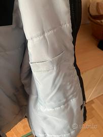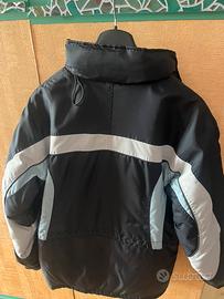 Giacca da neve Mc Kee’s da donna, Taglia 46. Fondo nero con inserzioni grigio chiaro e celeste(come la fodera interna). Cappuccio richiudibile sul retro-collo. Interno collo in pile. Chiusura con cerniera e automatici, regolabile in vita e sulle gambe. Due tasche esterne con cerniera invisibile e una tasca interna aperta. Polsi regolabili con velcro. Anti-vento e impermeabile. Calda e confortevole. Usata due volte.