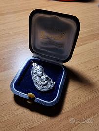 Medaglietta pendente raffigurante la Vergine Maria con Bambino, un simbolo di protezione e amore materno. Icona sacra della religione cattolica e del cristianesimo raffigurante Maria Santissima Madre di Nostro Signore Gesù Cristo.