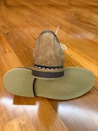 • Materiale Pregiato: Realizzato in pelle scamosciata di Wildbock (pelle di stambecco/capra selvatica) conciata al camoscio in colore marrone, un materiale rinomato per la sua eccezionale durata e robustezza.