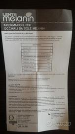 Come da titolo vendo OCCHIALI ALLA MELANINA ORIGINALI "MELANIN" VISTA PROTETTA AL 100%. La prima ed unica linea di lenti da sole con Melanina. NON SI TRATTA DI "CINESATE" ma di occhiali distribuiti in esclusiva nelle migliori farmacie italiane da Quidnovi Pharma!!!