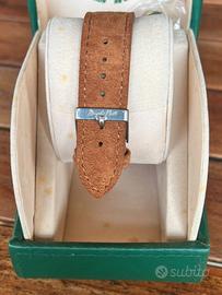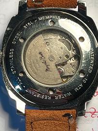 Memphis Belle modello Predator. Orologio dal designo pulito ma accattivante. Orologio prodotto diversi anni fa e diventato oramai da collezione. Buono lo stato generale. Cassa in acciaio da 44mm con fondo aperto e corona a vite. Impermeabilità 100 metri da testare. Vetro minerale . Movimento automatico Miyota Quadrante dell’Accademia Navale. Orologio funzionante e cinturino nuovo ( terze parti) con fibbia Memphis.