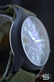 Memphis Belle Sandy Ranger Automatic del 2014 circa. Fondo di magazzino mai indossato. Personalizzato per il 4° Reggimento Alpini Paracadutisti “Ranger” Nello specifico, un reparto d’élite di Forze Speciali dell’Esercito Italiano. Cassa con finitura PVD nero opaco da 44 mm. per 12 mm. di spessore. Numeri arabi e sfere con trattamento SuperLuminova. Data a rimessa rapida. Vetro zaffiro curvo con trattamento anti riflesso. Movimento meccanico a carica automatica Seiko NH35. Fondello serrato a vite con oblò che lascia il movimento a vista. La corona di carica ha la stessa finitura della casa ed è serrata a vite. Cinturino in tela, personalizzato Memphis Belle. L’impermeabilità era in origine garantita fino a 100 metri, ma ad oggi non testati. È inoltre completo della sua pochette, nonché la scatola e la garanzia in bianco. ‼️NON SONO INTERESSATO A OFFERTE INFERIORI AL PREZZO INDICATO O A SCAMBI. GRAZIE.‼️ ‼️GUARDA TUTTI I MIEI OROLOGI IN VENDITA!‼️