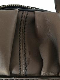 Bellissima borsa in pelle Coccinelle originale. Usata pochissimo, in ottime condizioni sia interne che esterne (unico difetto, impercettibile, una piccolissima macchiolina vedi ultima foto, da qui il prezzo basso). Colore tortora, si sposa bene con tutto. Capiente ( lunghezza 45, ampiezza 22, altezza 22, manici esclusi).