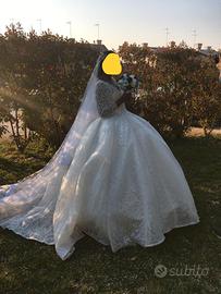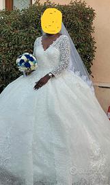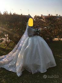 Come da foto, vendo abito da sposa, praticamente nuovo, come da foto. Misura XL , per una persona alta mt. 1.80. Prezzo un po' trattabile Visibile a Spinea da Giorgio