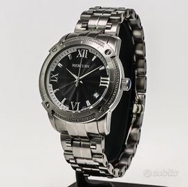 Mercury ME10240 Swiss Quarzo Nuovo MERCURY ME10240-SS-S-3 Swiss Made - Orologio da polso NUOVO DI ZECECA, mai indossato, completo di scatola originale in pelle beige, etichetta di autenticità e garanzia internazionale. PERFETTO PER: Sport, ufficio, eventi formali o uso quotidiano - versatile unisex dal design aggressivo e raffinato. SPECIFICHE COMPLETE: ✅ Modello: ME10240-SS-S-3 ✅ Movimento: Quarzo Swiss Made ultra-preciso ✅ Cassa: Acciaio inossidabile 316L tonneau 44mm x 12mm ✅ Quadrante: Nero texture onde con indici romani XII, cristalli Swarovski incastonati ✅ Funzioni: Cronografo integrato + datario ✅ Vetro: Minerale antiriflesso ✅ Cinturino: Acciaio massiccio deployant (larghezza 22mm) ✅ Impermeabilità: 50m (5 ATM) - nuoto/doccia ok ✅ Peso: ~180g (solido, sensazione premium) QUALITÀ SVIZZERA AUTENTICA: Cassa ultrapura progettata 6+ mesi, prodotta 5+ mesi con controlli qualità rigorosi. Lunetta e attacchi sagomati per massima resistenza urti/vibrazioni. Ogni dettaglio funzionale senza compromessi. CONDIZIONI: Impeccabili, foto reali 360° (fronte, retro, lati, scatola, dettagli cristalli). PREZZO: 99€ TRATTABILI (valore originale >350€)