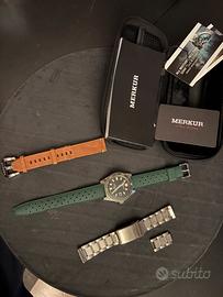 Vendo Merkur Ocean master 300 m 62 Mas Cinturino pelle originale intonso Cinturino gomma verde Bracciale acciaio Moviento nh 35 Ghiera ceramica Perfetto Poco trattabile No scambio