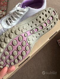 Snickers donna in tessuto e pelle ghiaccio/glicine. Molto ben conservate. Numero 39