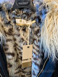 MET giubbotto nuovo, giovanile nero, con cappuccio, interno finto pelo composto di vari colori staccabile con cerniera, collo pelo biondo, capo molto caldo per inverno, da indossare anche in estate senza il pelo interno. Due grandi tasche esterne, chiusura con cerniera e bottoni automatici dorati. Poliestere, cotone e acrilico. Possibile la spedizione.