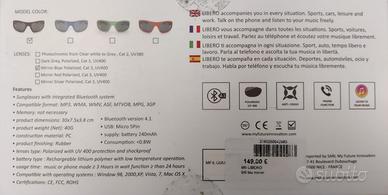 MFI (My FUTURE INNOVATION) Sunglasses! Ti accompagna in ogni situazione. Sport Auto Tempo libero e lavoro. Parla al telefono e ascolta la tua musica in libertà! Tecnologia e stile fusi insieme in questo occhiale versatile e stiloso powered by MFI: grazie all’avanzato sistema Bluetooth è possibile parlare al telefono e ascoltare la tua musica preferita con una qualità superiore dell’AUDIO grazie anche alla modalità “Wind-cut”. Qualità top anche nelle ottiche polarizzate, per un oggetto di culto che ti accompagna ovunque: sport, auto, tempo libero e lavoro! - Occhiale da sole bluetooth. - Lenti Polarizzate - Lenti UV400 - Si ricarica mediante porta Usb.