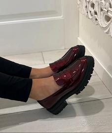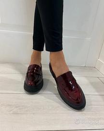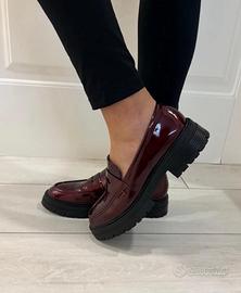 Lunghezza 26 cm Tacco 4 cm Nuovo con scatola Tg 39 Calza regolare Mocassino donna bordeaux