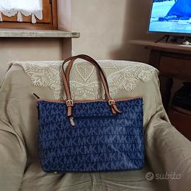 Vendo tenuta perfettamente Michael Kors Blue Tote Bag Borsa donna colore blu con tasca esterna con zip parte superiore con zip varie tasche interne logo Michael Kors in tutto il rivestimento borsa