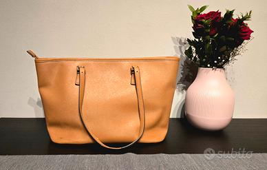 Michael Kors Borsa tote Quinn grande in pelle martellata in ottime condizioni. Colore cuoio. Lievi segni di usura sul manico, nessuna macchia o graffio.