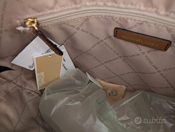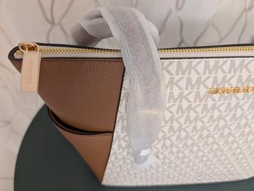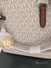 Borsa con sigilli del negozio molto elegante colore vaniglia con inserti marroni. Dimensioni 35 x 25 x 12 Disponibile busta in carta del marchio