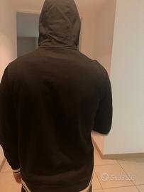 Felpa con cappuccio nera, logo ricamato e non stampato, fodera cappuccio con loghi, polsini e fascia bianca e nera. Ottima vestibilita' e ottime condizioni.