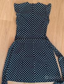 Abito con maniche ad aletta, borchiette dorate, cintura morbida con frange, zip a scomparsa. Taglia XS.