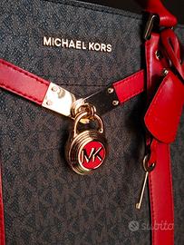 Vendo meravigliosa borsa Michael Kors modello Nouveau Hamilton Satchel in tela logata marrone con eleganti dettagli in pelle rossa (codice: 30F9G0HS3B). La borsa è in condizioni eccellenti, utilizzata soltanto in due occasioni e conservata con la massima cura. Dettagli principali: - Condizioni: Pari al nuovo, pelle e tela perfette. - Accessori iconici: Il lucchetto e la chiave dorati sono intatti, in perfette condizioni, senza graffi o segni di usura. - Tracolla: Inclusa, rimovibile e ancora nel suo imballaggio originale. - Corredo: Presente il cartellino originale (staccato, vedi foto) e la scatola Michael Kors (comunico per correttezza che la scatola presenta tre piccoli strappi laterali dovuti alla conservazione, vedi foto, ma la borsa è intatta). Dustbag non disponibile. - Autenticità: Garantita da etichetta nera interna (Made in Indonesia) con codice identificativo. Prezzo: 250€ trattabili. Solo ritiro a mano a Brescia città (valutabile volentieri anche la provincia) e zona Franciacorta. Questa modalità è perfetta per tutelarvi, permettendovi di visionare direttamente l'articolo, i dettagli e il materiale prima dell' acquisto. No scambi e no spedizioni. Per ulteriori informazioni non esitate a contattarmi!