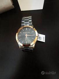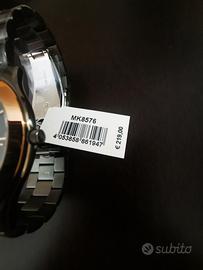 Orologio Michael Kors da uomo; Cassa rotonda in acciaio inossidabile (diametro 44 mm, con finitura opaca colore canna di fucile; impermeabile fino a 5 ATM; Ghiera colore oro rosa