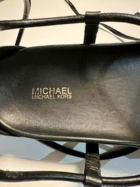 Sandali Michael Kors modello Vera Flat in eco-pelle nera (faux leather).