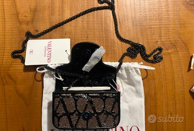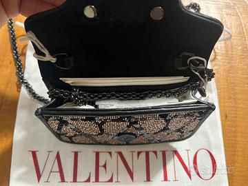 Vendo bellissima Micro bag di Valentino Garavani Con Catena Vlogo Signature In Vitello Granato richiamo sparkling. La mini bag è nuova, mai indossata, ancora con cartellino e in condizioni perfette come da foto. Dettagli: •Modello: Micro Bag •Colore: Black, rose •Portabilità: a spalla, con tracolla rimovibile •Dotazioni: libretti originali, dust bag • Misure: 12 x 8 x 3.5 Prezzo di listino: €1215 Disponibile per condividere ulteriori informazioni e/o foto. Disponibile per consegna a mano a Brescia e limitrofi.