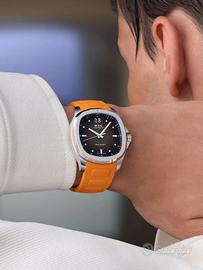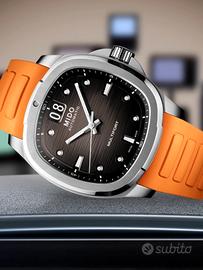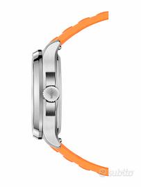 Un'icona reinterpretata. Carattere senza compromessi. Il MIDO Multifort TV Big Date è un orologio che non passa inosservato. La cassa rettangolare ispirata agli schermi TV degli anni '60 incontra un cinturino in gomma arancio brillante: il risultato è un pezzo sportivo-elegante, capace di distinguersi al polso con personalità autentica. Al cuore batte il Calibro automatico MIDO 80 — basato su ETA — con spirale in Nivachron™, eccezionalmente resistente ai campi magnetici e agli urti. Con 80 ore di riserva di carica, non ti lascia mai a piedi nel weekend. Perché sceglierlo Grande Data a ore 12 — leggibilità immediata, dettaglio da orologio di lusso Vetro zaffiro antiriflesso su entrambi i lati — cristallo ingraffabile, visione perfetta Impermeabile 10 bar (100m) con corona a vite — ideale per uso quotidiano e sport acquatici leggeri Fondello a vista — ammira il movimento automatico in azione Cinturino in gomma arancio — comfort assoluto, colore che fa la differenza 🇨🇭 Swiss Made — garanzia di qualità e manifattura elvetica Specifiche tecniche Referenza: M049.526.17.081.00 Movimento: Automatico MIDO Calibro 80 (ETA) Riserva di carica: 80 ore Cassa: Acciaio inossidabile, forma rettangolare Dimensioni: 40 × 39,2 mm — spessore 11,5 mm Anse: 22 mm Vetro: Zaffiro antiriflesso doppio lato Impermeabilità: 10 bar / 100 m Cinturino: Gomma arancio con fibbia ardiglione Peso: 100 g Garanzia: 2 anni ufficiale MIDO Disponibile in pronta consegna. Spedizione sicura e assicurata.