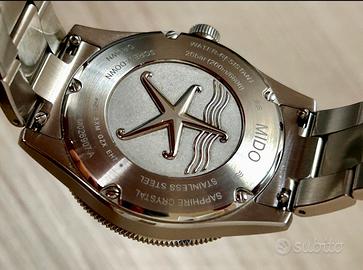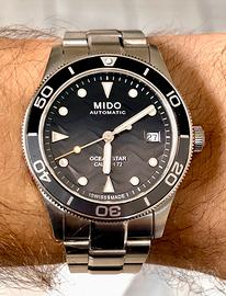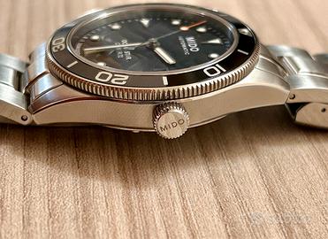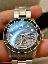 Vendo questo stupendo Mido Ocean Star 39 mm Caliber 72, chi conosce il marchio sa di cosa si sta parlando. Spessore di soli 10,5 mm, micro regolazione del bracciale, impermeabilità 200 metri, trattamento antiriflesso esterno ed interno del vetro zaffiro, movimento precisissimo, sempre tenuto nella scatola del tempo in ambiente controllato. Fantastico quadrante con riportate le ondulazioni della sabbia del fondale marino. Acquistato il 5/7/2025 in gioielleria e ovviamente provvisto di scatola, scontrino e garanzia. Usato solo il weekend e privo di graffi e botte. Per qualsiasi info o foto aggiuntiva contatatemi pure. Giulio