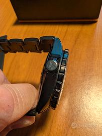 Il quadrante è nero con lancette e indici rivestiti diSuper-LumiNova, cassa inacciaiocon rivestimento in DLCeghiera in ceramica.La cassa ha undiametro di43,5 mme un altezza di 14,1 mm