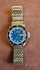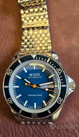 Bellissimo diver MIDO OCEAN STAR Calibro automatico Mido 80 con 80 ore di riserva di carica Cassa da 40,5 mm. Diver 200 metri Vetro zaffiro bombato con doppio trattamento antiriflesso Bracciale in acciaio con estensione tuta sub Piccole airlines sulla clasp di chiusura facilmente eliminabili previa lucidatura Cedo anche cinturino artigianale in vera pelle fatto a mano Si preferisce il ritiro a mano, in alternativa spedizione assicurata a carico dell'acquirente NB non c'è a corredo dell'orologio la scatola Prezzo del nuovo euro 1.140 - vendo a 650 euro Cell.389.0580073