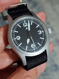 Orologio in stile militare con cassa sabbiata da 38 mm, vetro zaffiro, movimento al quarzo seiko vh31, cinturino in nylon da 20 mm di buona qualità, ottima luminescenza, resistenza all'acqua 100 metri, l'orologio è nuovo, completo di tutto, spedizione da me gestita con posta prioritaria tracciabile, consegna prevista in un giorno...