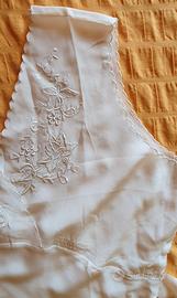 Bellissima e sexy camicia da notte in raso pura seta 100%, bianca, spalla larga. Bellissimi ricami su scollatura. Lunghezza 130 cm. TG 42-44. Nuova mai usata