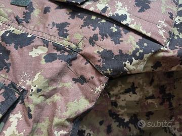Completo mimetico impermeabile taglia Large – Regular ( misura americana ). Comprata anni fa mai usata , le misure della giacchia e dei pantaloni sono riportate in foto delle etichette originali. Areazione sotto le ascelle , regolazione con scratch, 8 tasche. Possibilità di altre foto per particolari