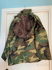 Completo mimetico in goretex, composto da giaccone, dotato di cappuccio removibile e gilet imbottito, e da pantaloni con bretelle. MAI USATO. Marca cotonificio Alfredo Grassi. Taglia 50, ma a me viene bene e solitamente indosso, come giacca, taglia 52/54. Prezzo leggermente trattabile, ma ripeto non è mai stato usato, l'ho tolto dalla confezione solo per fare le foto.