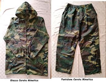 Due Mimetiche Militari (Nato) Taglia L (ma equivalenti ad una XL italiana) La Prima Foto, Mimetica Mai Usata, quindi Nuova, a 50 euro. La Seconda Foto, Mimetica usata 2 volte, senza abrasioni o strappi, praticamente come nuova, a 35 euro. La Terza Foto, Cerata Antipioggia, usata 1 volta, anche essa come nuova, a 20 euro. La Quarta Foto, 2 Fondine, come nuove, a 5 euro/cad. La Quinta Foto, Gibernaggio che regalo a chi dovesse prendere Tutto insieme. Prezzi Non Trattabili. Costo eventuale spedizione a parte. Materiale visibile in zona Saronno (VA) Mi Scuso fin da ora se non sempre posso rispondere tempestivamente.