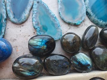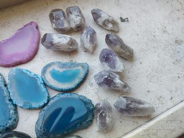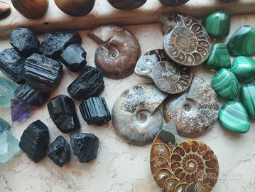 vendo bellissima collezione di cristalli e fossili alcuni già forati per realizzare pendoli o collane, tra cui agate vari colori, ametiste, malachite, fluoriti verdi blu e viola, ammoniti cristallizzate con aragonite, occhio di tigre burattate e cabochon, tormalina nera, chiasolite e lapislazzuli burattate, vendo in blocco al prezzo di 100€ oppure singolarmente da concordare, per altre info contattatemi!!!
