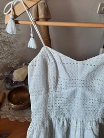 Mini abito in puro cotone TG small colore bianco candido tutto traforato in sangallo con sottoveste sempre in cotone Nuovo