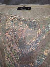 Elegante mini-abito Calliope 2 pezzi in tessuto con paillettes bianche cangianti.