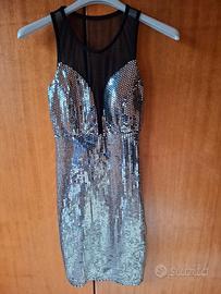 mini abito argentato donna elasticizzato TG S