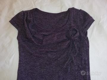 Vendo mini abito di lana, viola, con cintura nera e decoro davanti, una rosa e intreccio. Molto carino, per ragazze.