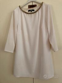 Mini abito bianco con collo impreziosito da catena colore oro Elisabetta Franchi. Taglia 42. Buone condizioni