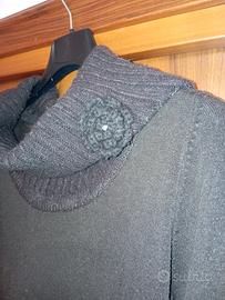 mini abito marrone con collo ad anello e motivo fiore. misto lana e cachemire. taglia S/M