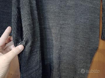Di taglio semplice, si stringe verso il fondo con alcune cuciture verticali che danno un accenno di effetto a palloncino, ha scollo arrotondato e maniche lunghe, con due tasche laterali. In filato sintetico, mi è stato venduto come Taglia Unica ma non ha l'etichetta all'interno, secondo me veste una taglia M/L.