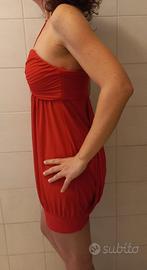 Mini abito da cocktail/festa/ballo rosso corallo. Taglia 42/44. Lunghezza 61 cm, ampiezza seno 36 cm. Composizione elastan e poliestere. Ottimo stato. Marchio CLASS ROBERTO CAVALLI.