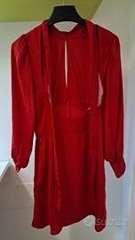 Mini abito rosso con schiena scoperta H&M Divided, fessura a goccia sul davanti, scollo halter con nastro per fare fiocco sul retro, volant alla base dello scollo, maniche leggermente a sbuffo con polsini e bottoncini ton sur ton in raso, zip a scomparsa sul fianco. Annuncio presente qui per visibilità, acquisto con altre piattaforme perchè qui sono stata truffata.
