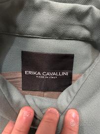 Bottoni decorativi frontali di grandi dimensioni sotto una finta chiusura a polo.